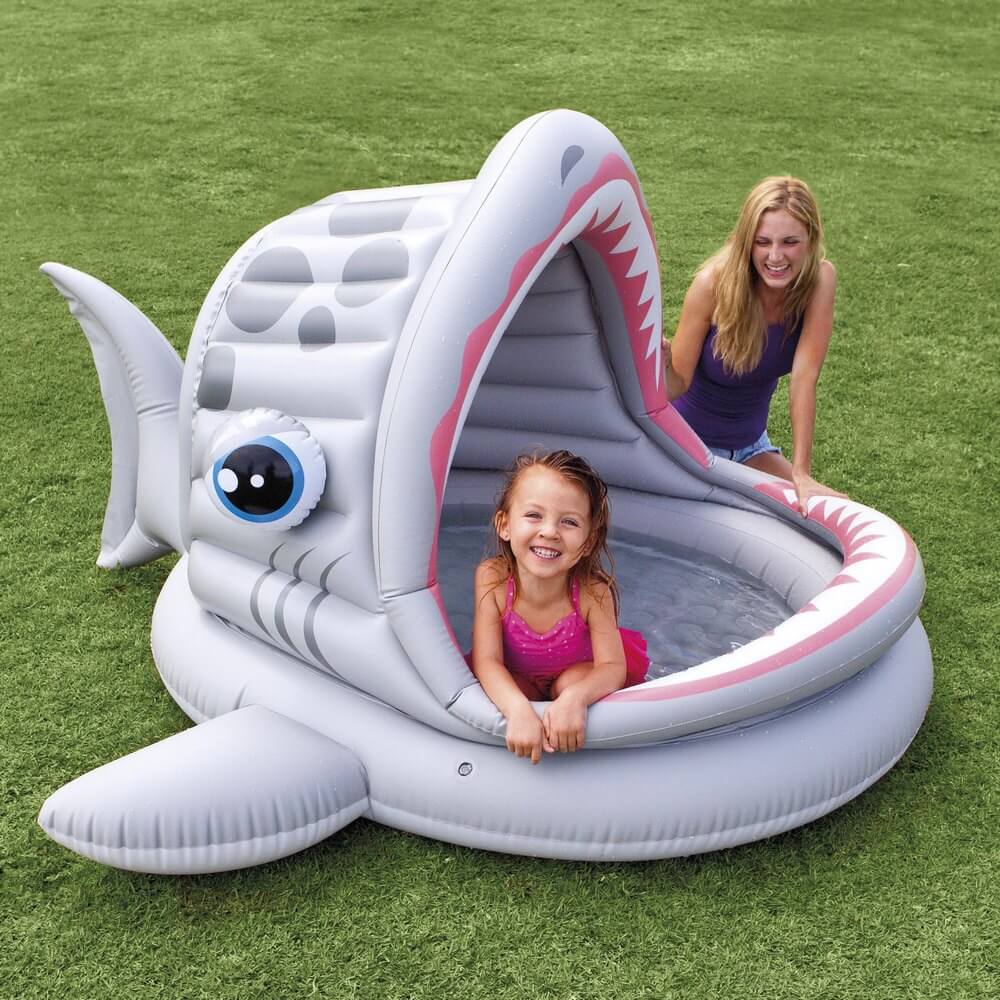 Небольшой детский надувной бассейн в виде акулы непременно понравится вашей детворе. Бассейн оснащен навесом, что позволяет детишкам плескаться в нем даже в жаркий солнечный день, не боясь перегреться на солнце. Надувное дно делает бассейн безопасным для детей. Материал бассейна винил, толщиной 0,25 мм. Установка бассейна предельно проста и занимает минимум времени. Надувной бассейн предназначен для детей от 2 лет.